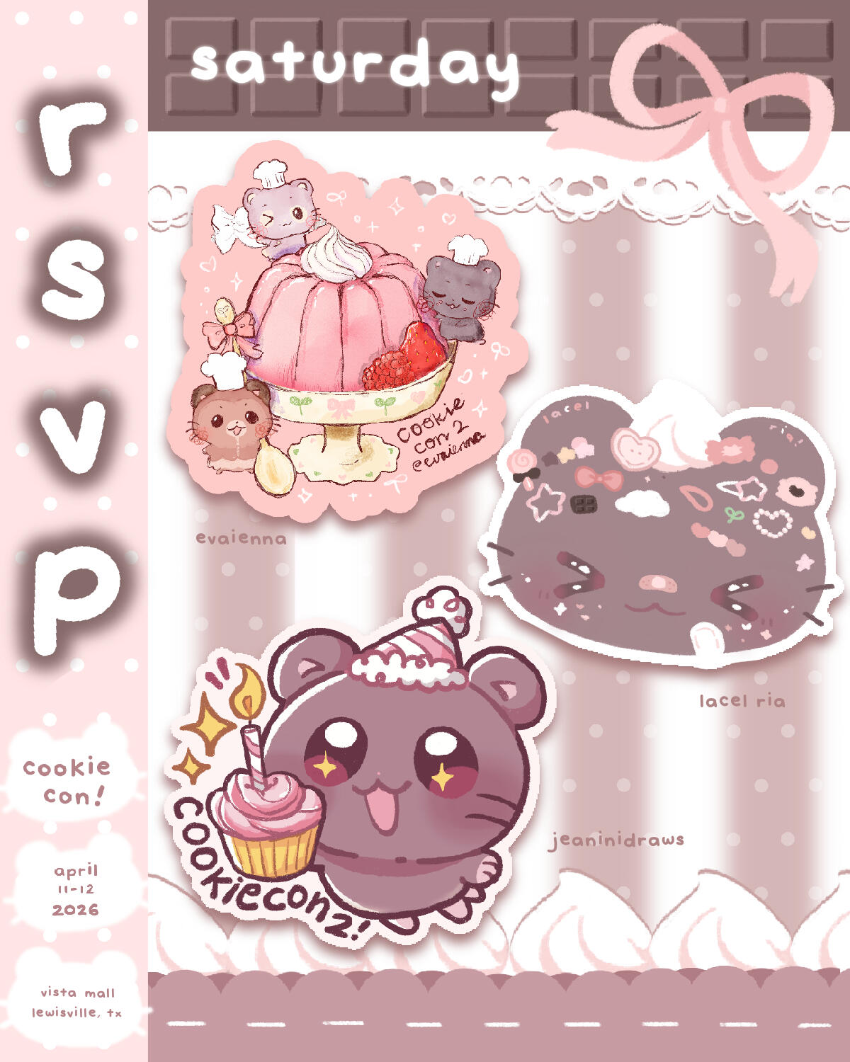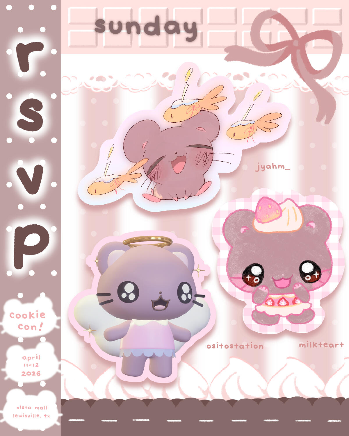 ⊹ 3 exclusive cookie stickers (different for saturday and sunday, while supplies last)hosted by: @lacelria
