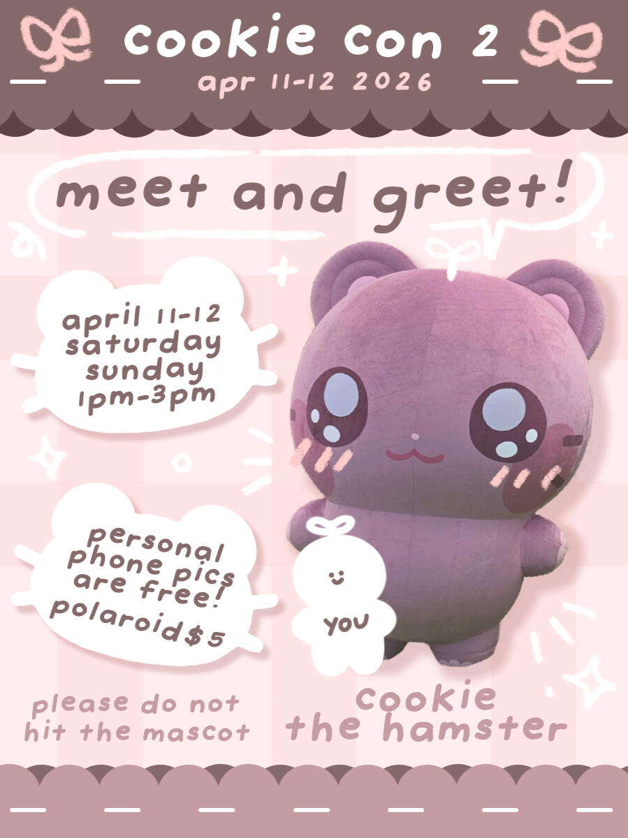 • cookie mascot meet & greet (1pm-3pm)📅 date: sat - sun, april 11 - 12